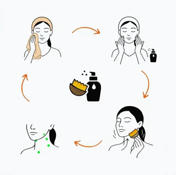2.Aplícalo desde abajo hacia arriba con una ligera presión a lo largo de la línea de la mandíbula, las mejillas y el cuello.