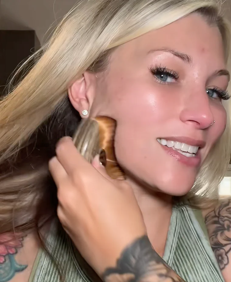 4.Limpia el cepillo y aplica tu sérum o crema hidratante para una absorción más rápida.